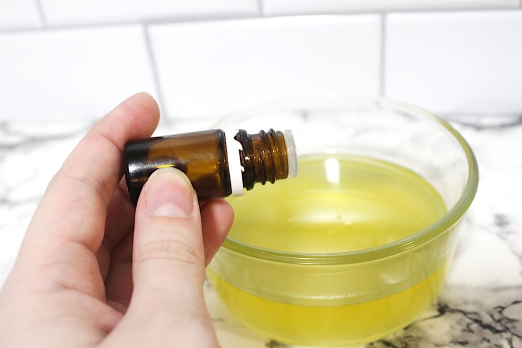 Add 20 drops of rosemary essential oil into the mixture. Stir together thoroughly.