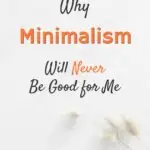I tried to be a minimalist and all it did was make me miserable to a degree I can’t even explain (I’m so thankful I stopped when I did). That’s why I’m now proudly and happily a minimalist drop out. And I can unabashedly say that I hate minimalism (or at least what people are saying that minimalism should be).